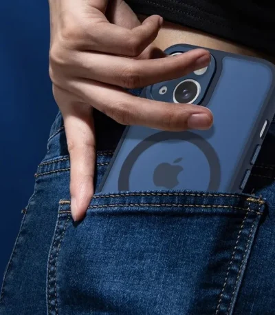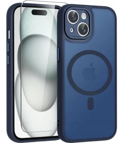 Case for iPhone 15 for MagSafe REINFORCED 360° BLUE MAT + Glass for screen