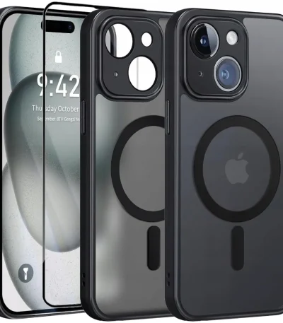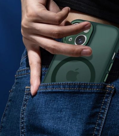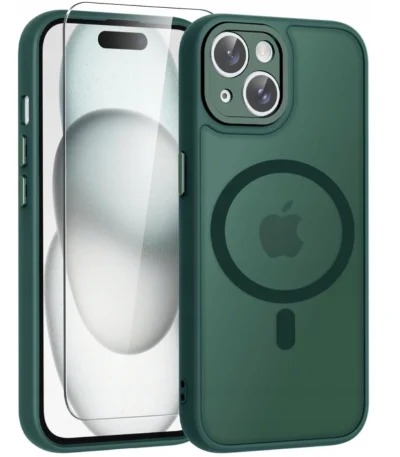 Case for iPhone 15 for MagSafe REINFORCED 360° GREEN MAT + Glass for screen