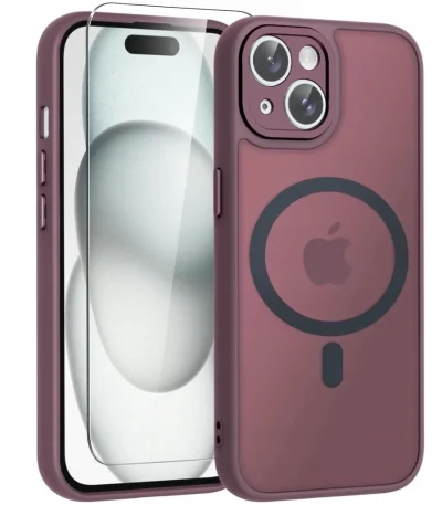 Case for iPhone 15 for MagSafe REINFORCED 360° BURGUNDY MAT + Glass for screen