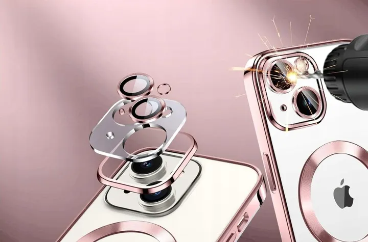 Case for iPhone 15 to MagSafe case GOLD ROSE camera protection + 2.5D glass