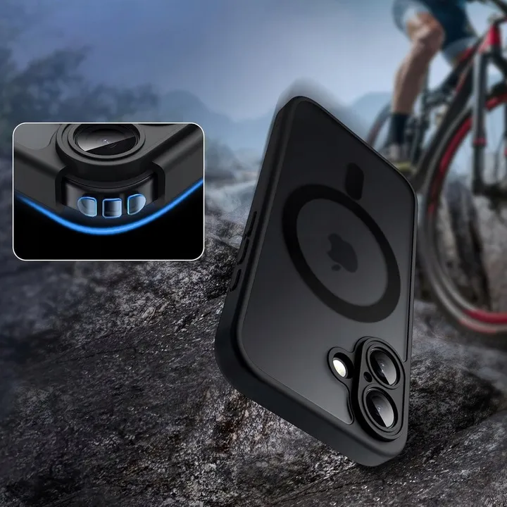 We offer you a perfectly matched case with a matte finish and a built-in Magsafe magnetic ring and durable tempered glass for the screen.